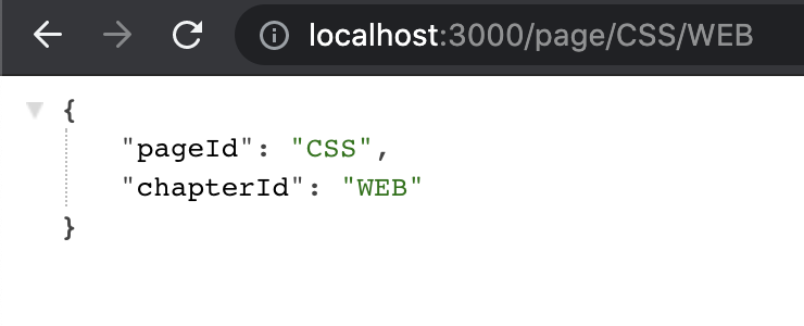 //밑의 왼쪽 결과 app.get('/page/:pageId', function(request, response){ return response.send(request.params); }); //밑의 오른쪽 결과 app.get('/page/:pageId/:chapterId', function(request, response){ return response.send(request.params); });