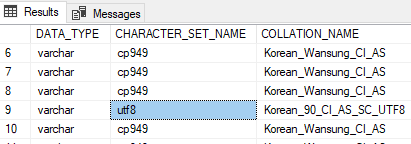 --Korean_100_CI_AS_KS_WS_SC_UTF8SQL SERVER COLLATIONS 열단위 변경