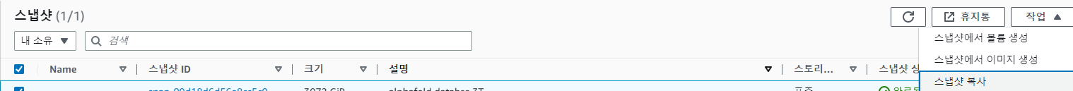 - 스냅샷 오른쪽 상단의 작업 버튼 클릭