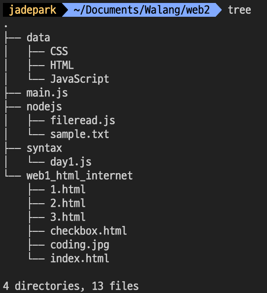 디렉토리 이동하기 전에는 web2에서 노드가 작동하게 되는데 읽으라고 적어준 sample.txt 경로는 nodejs 폴더이기에 undefined가 뜬다. directory 이동 전