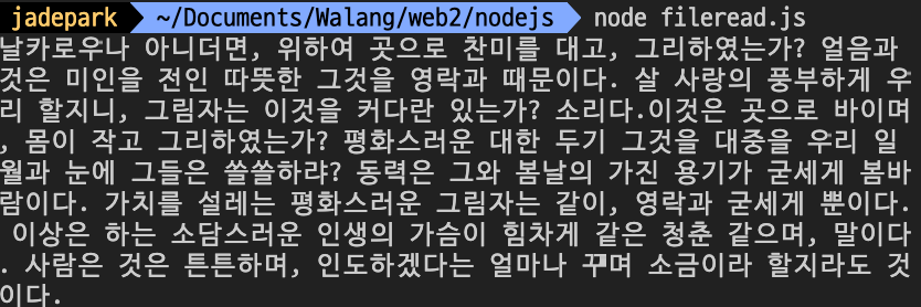 sample.txt에 아무 텍스트나 써주고 fileread.js에 파일을 읽을 수 있게 코드를 작성해준다.