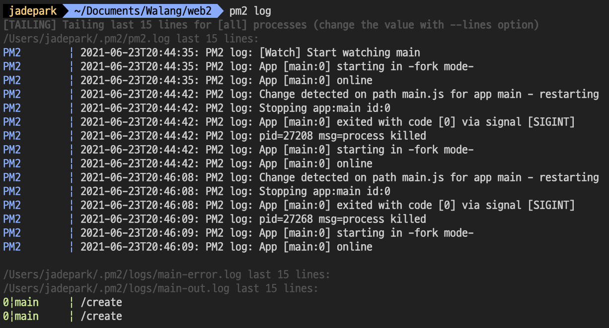 PM2로 변경사항, 에러 확인하기