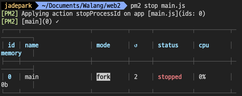 pm2 monit PM2 종료시키기
